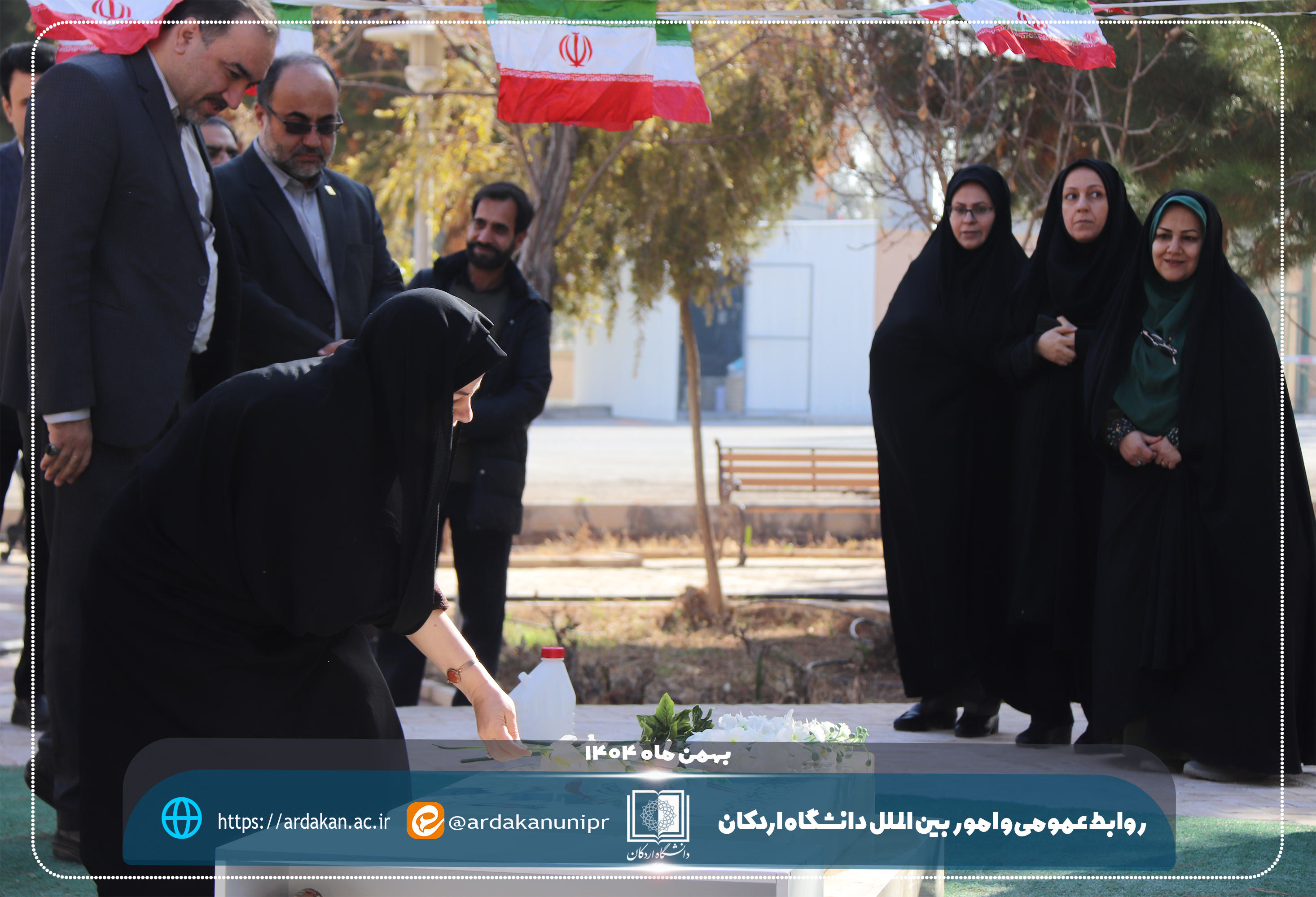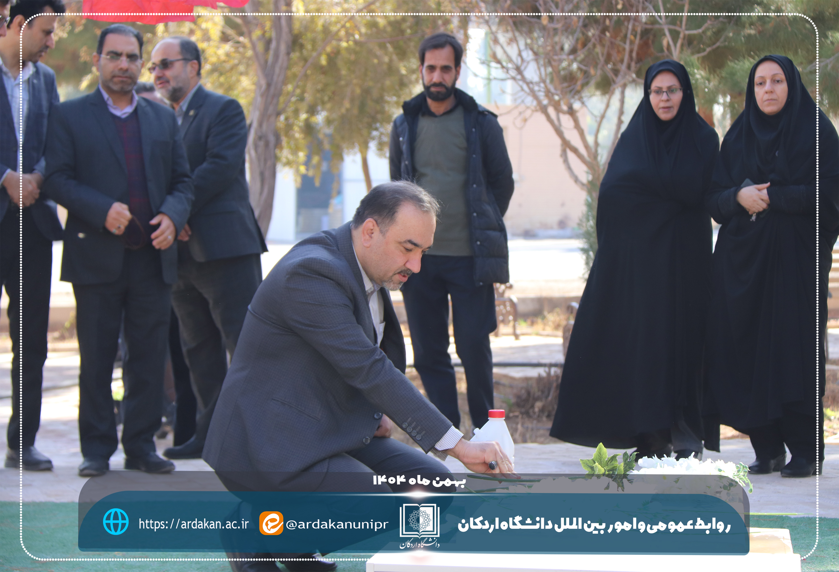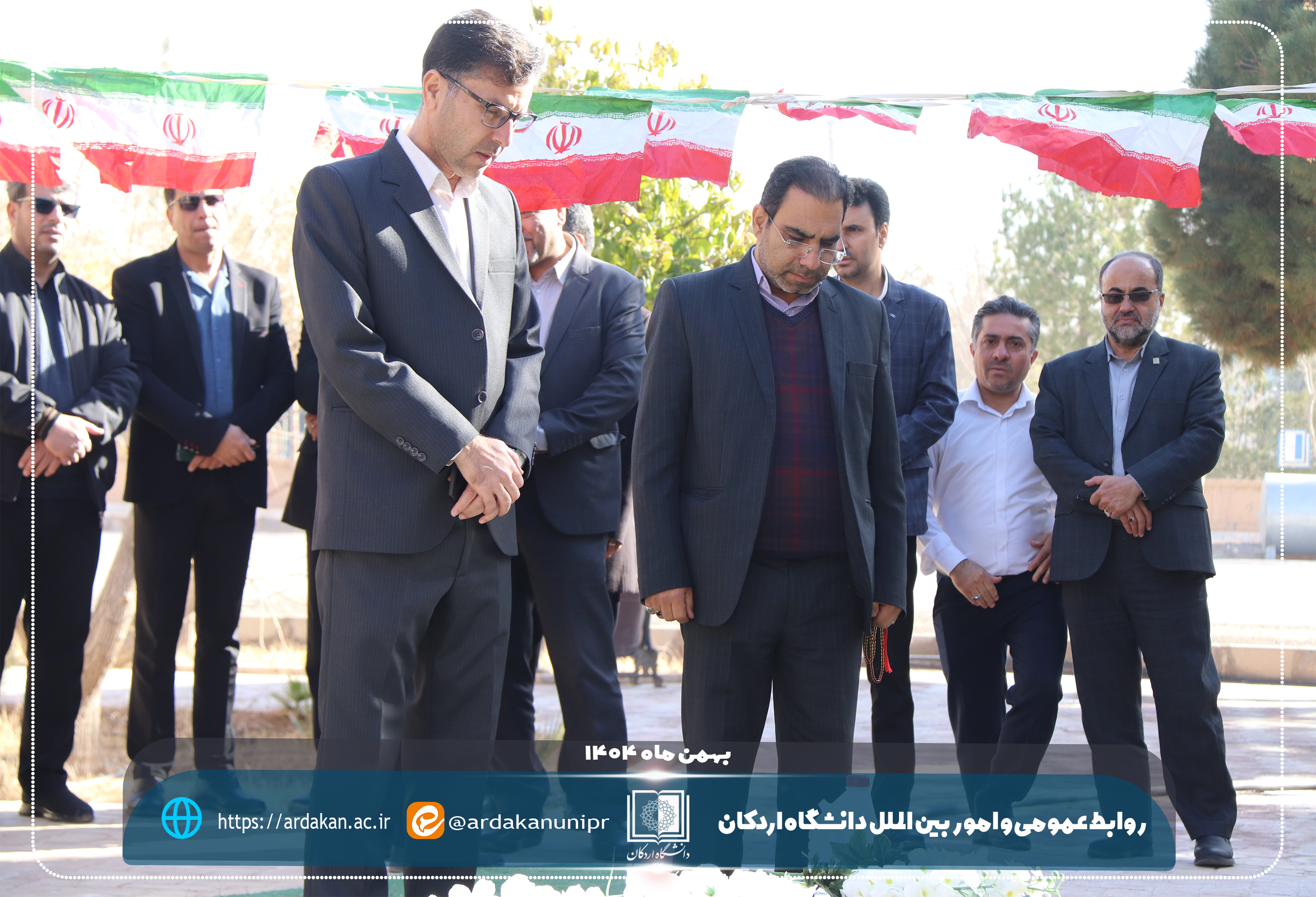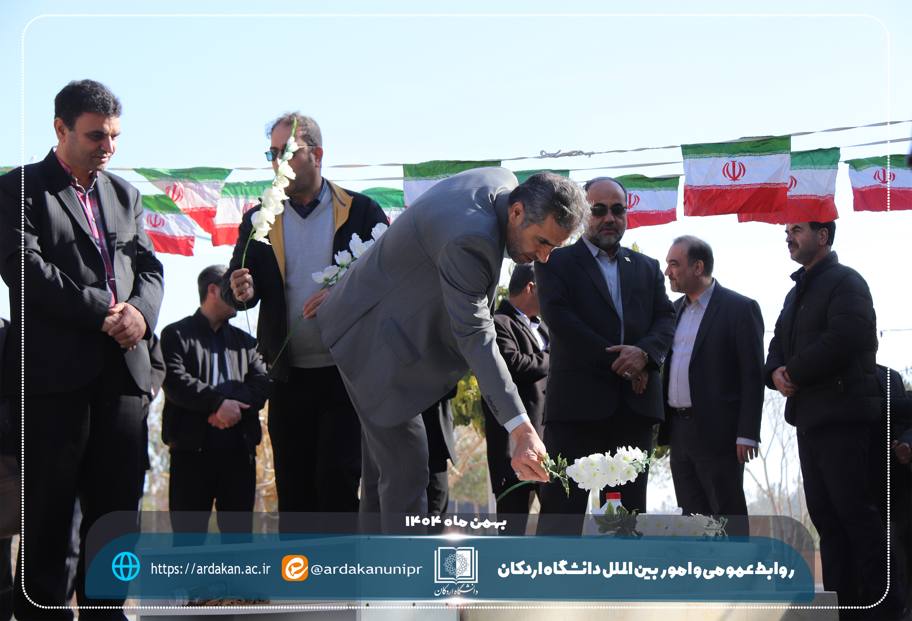 همزمان با آغاز ایامالله دهه مبارک فجر و سالروز ورود تاریخی حضرت امام خمینی(ره) به میهن اسلامی، مراسم غبارروبی و عطرافشانی گلزار شهید گمنام دانشگاه اردکان با حضور رئیس دانشگاه اردکان و جمعی از رؤسای مراکز آموزش عالی و دانشگاهیان شهرستان اردکان برگزار شد.