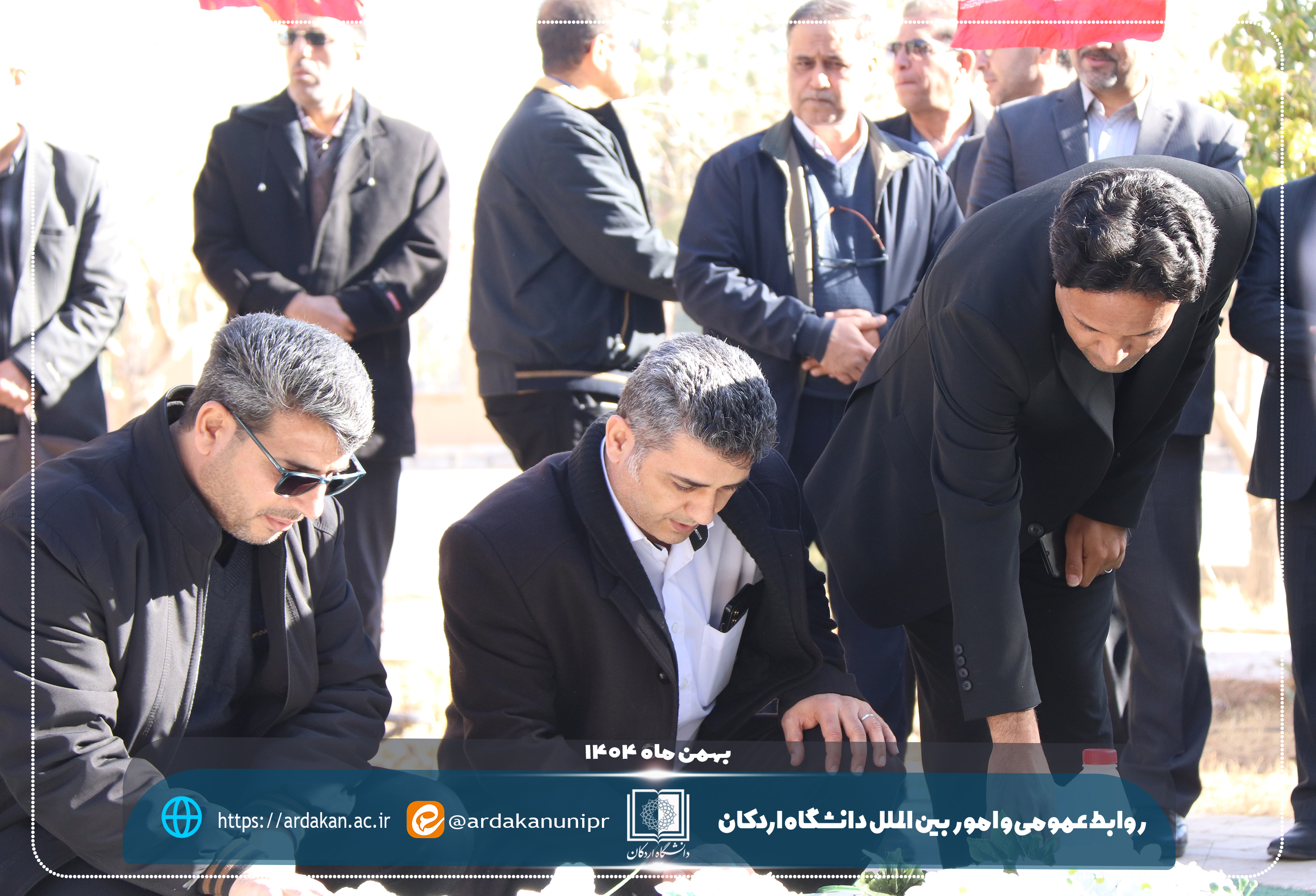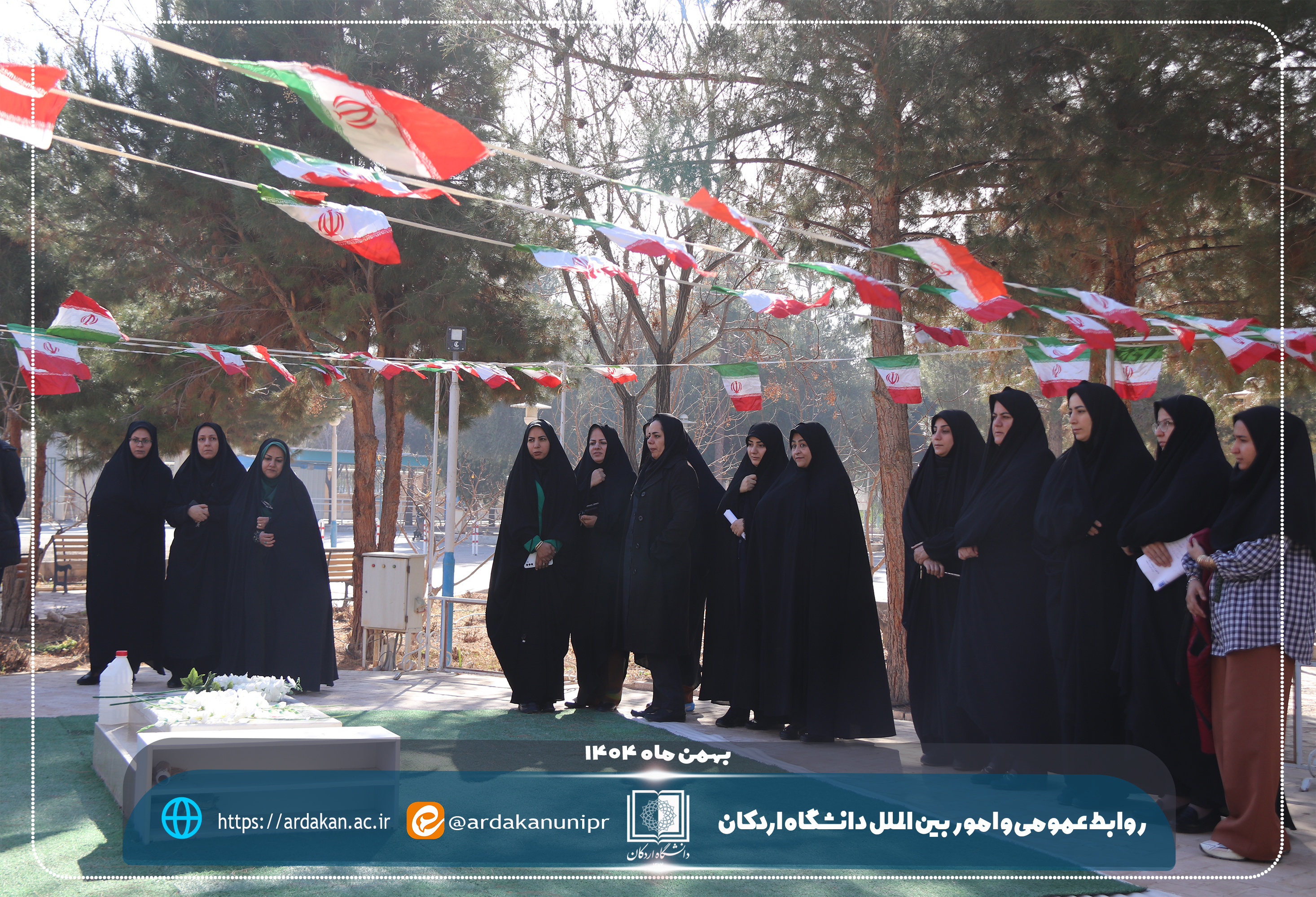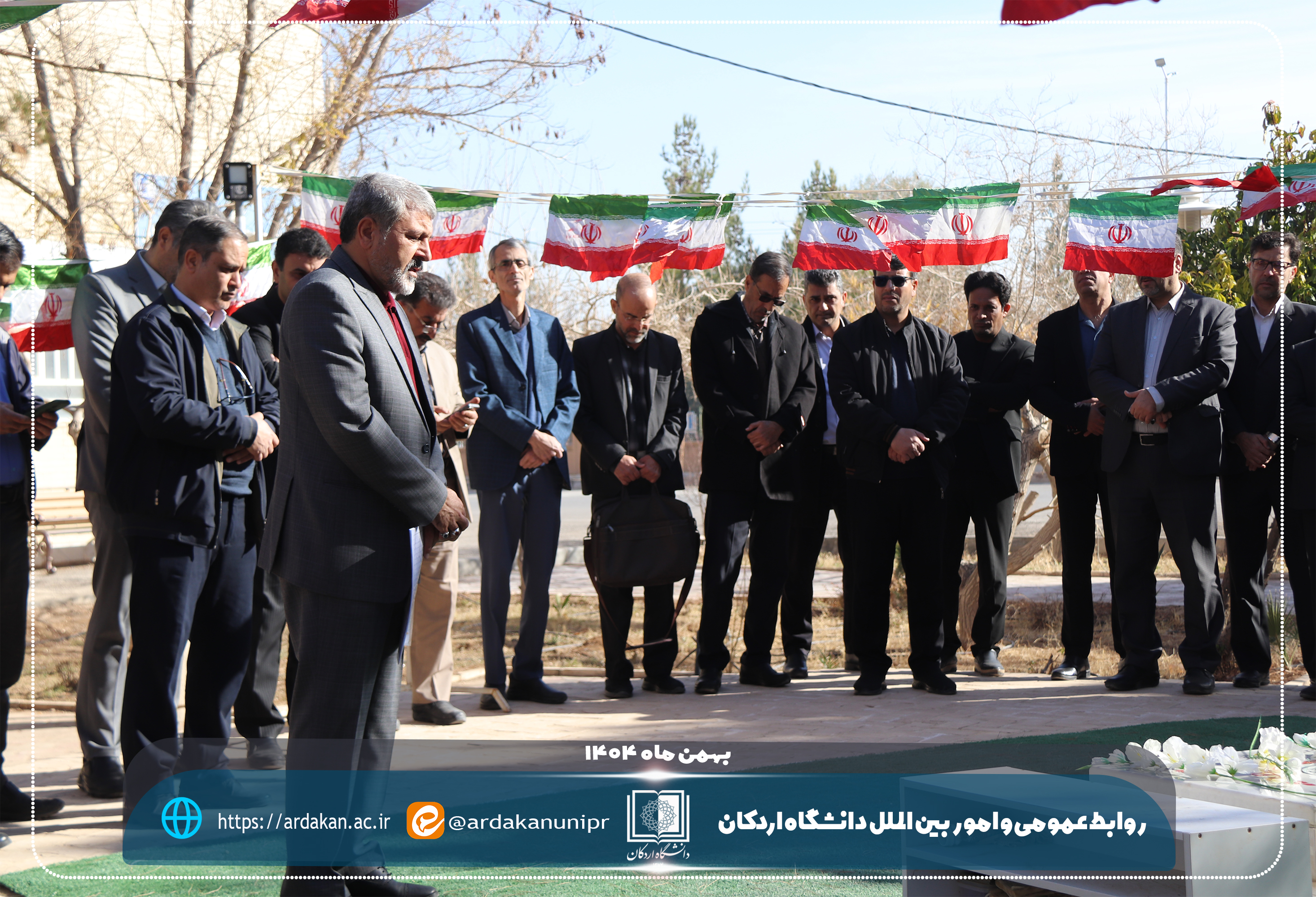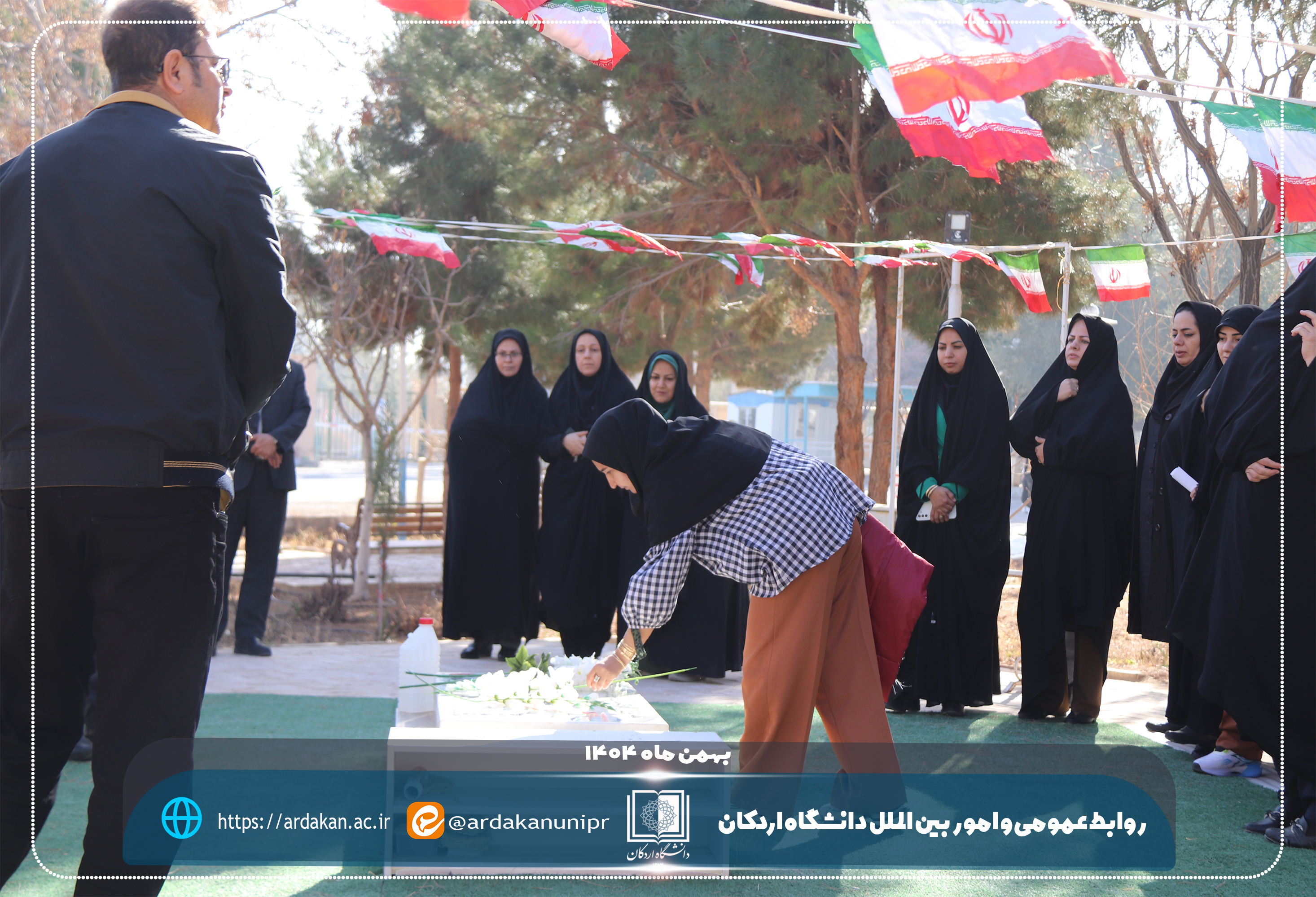 همزمان با آغاز ایامالله دهه مبارک فجر و سالروز ورود تاریخی حضرت امام خمینی(ره) به میهن اسلامی، مراسم غبارروبی و عطرافشانی گلزار شهید گمنام دانشگاه اردکان با حضور رئیس دانشگاه اردکان و جمعی از رؤسای مراکز آموزش عالی و دانشگاهیان شهرستان اردکان برگزار شد.