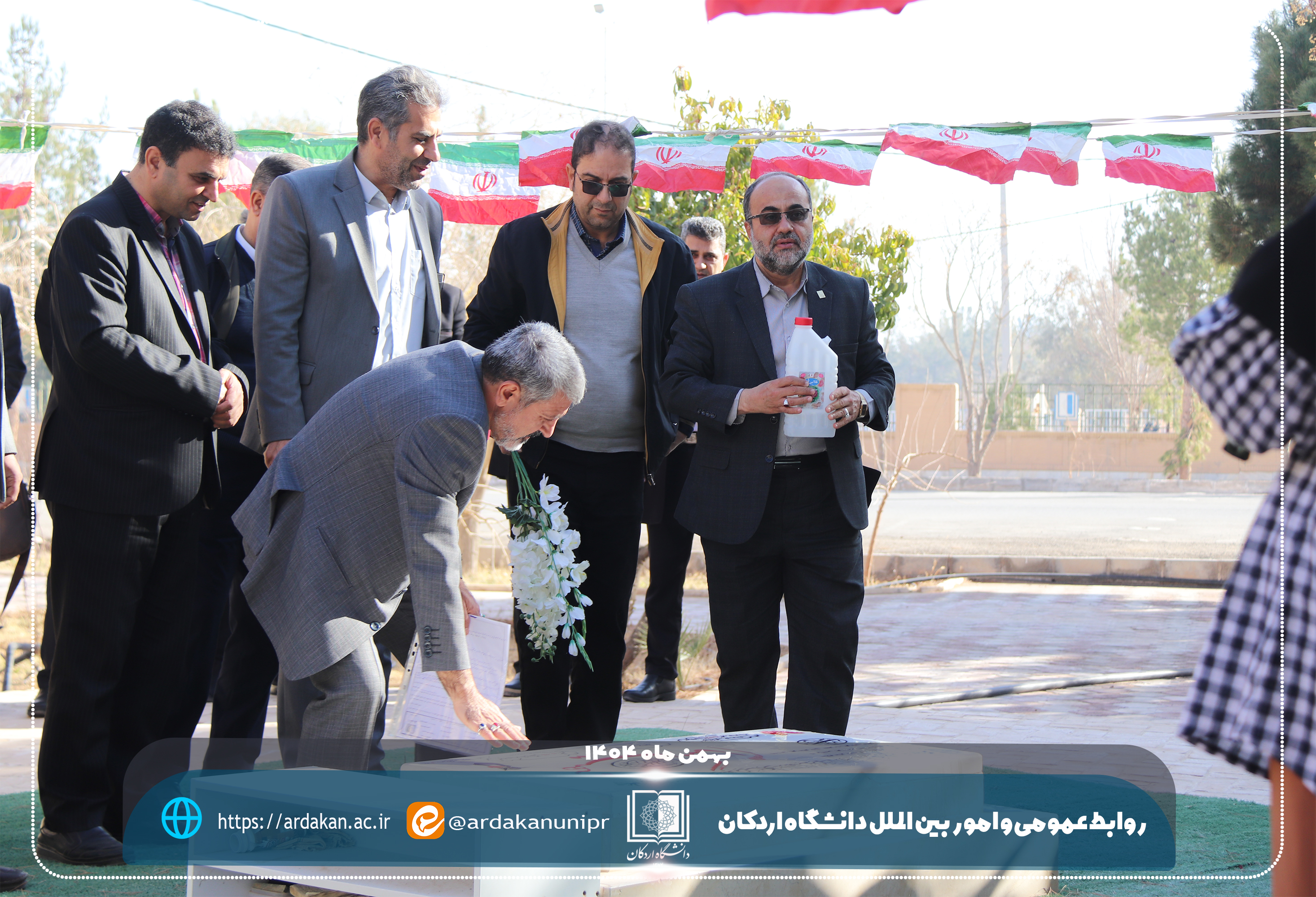 به گزارش روابط عمومی و امور بینالملل دانشگاه اردکان، در این مراسم ابتدا مرقد مطهر شهید گمنام دانشگاه با گلاب شستوشو داده شد و سپس با اهدای گل گلباران شد.